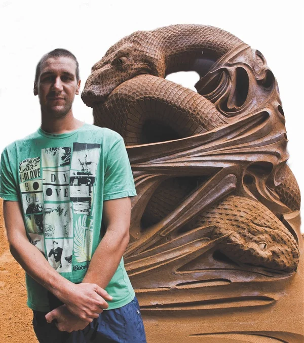 I am 38 years old, born in Czech Republic. I am living in northeast part of Czech in the mountain area, so winter sports are my main activities, together with biking in summer. When i was 23, with friend we decided to go to Spain and travel and work on season jobs. At the end we never worked, but since we were good in juggling, we performed on the streets and collected money in hat. Later on we met Czech sand sculptors in south Spain and we joined them and started learning. We met each other while juggling and than we met again, this time sand sculpting. After a year in Spain I contacted sand sculpture festival organizer in Portugal, got accepted, met lots of great people and since then I work with sand full time. In my free time, while in home with my family, I sculpt wood. This year I will travel to make sand sculptures in America for the first time.